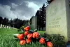 Vladimir ligt daar op rij acht 11, vlakbij de ingang. Aan de overkant staat de obelisk en de muur met de tekst ‘Lof aan de helden’.