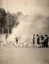 "Een ineengestrengelde massa mensen - kluwen mensen - die alleen uit elkaar te halen waren door ze vochtig te maken. Ze werden natgespoten. (..) Door gewoon te trekken haalden je de lichamen, als een stel beesten, eruit. Met afschuw hebben we dat gedaan een paar dagen maar toen waren we het al gewend."
