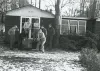 Studenten voor hun onderduikplek 'de hut' in de bossen
