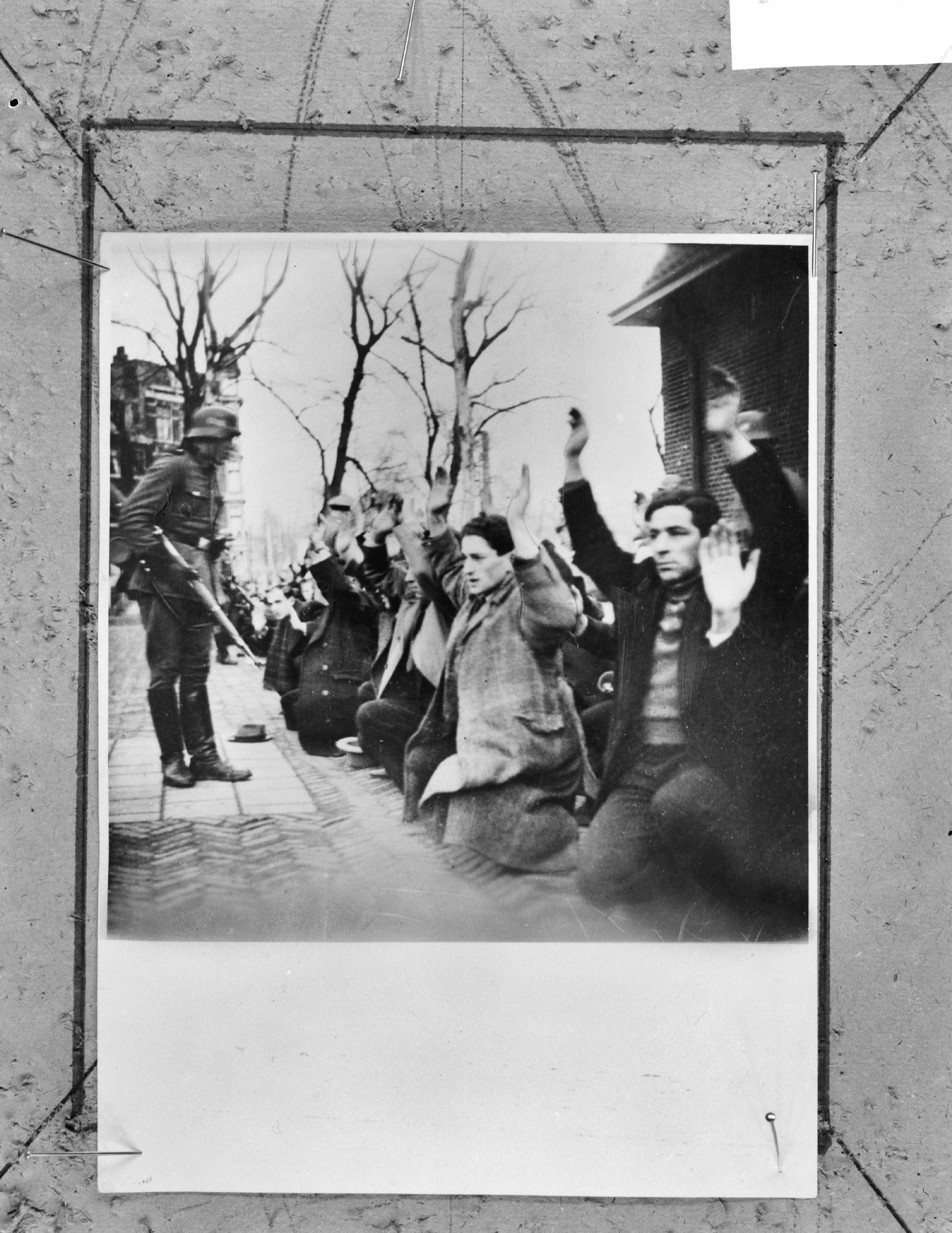 Razzia. Joden op het Waterlooplein (met armen omhoog)