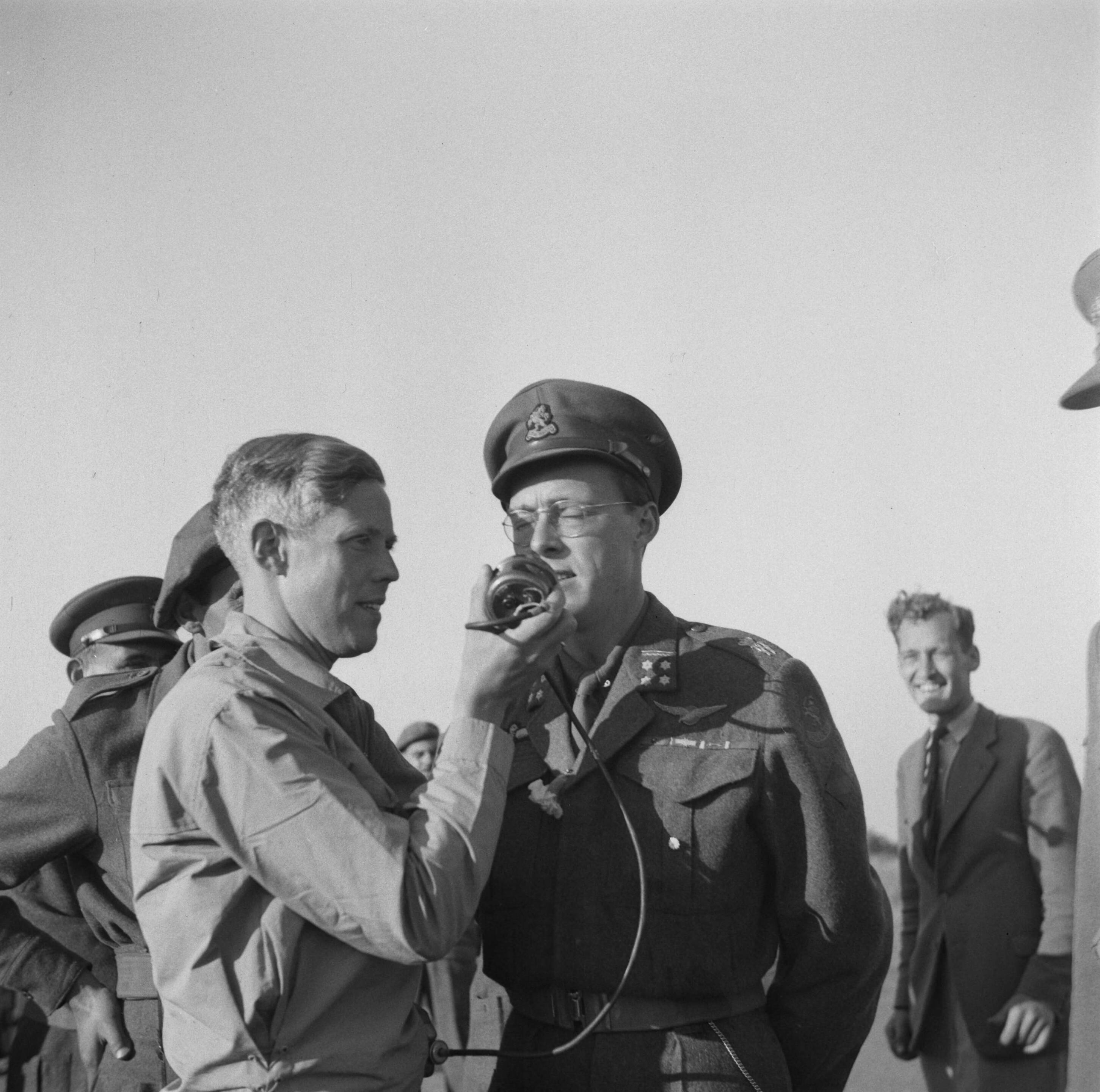 De prins geeft wordt geinterviewd door radioverslaggever Frits Thors