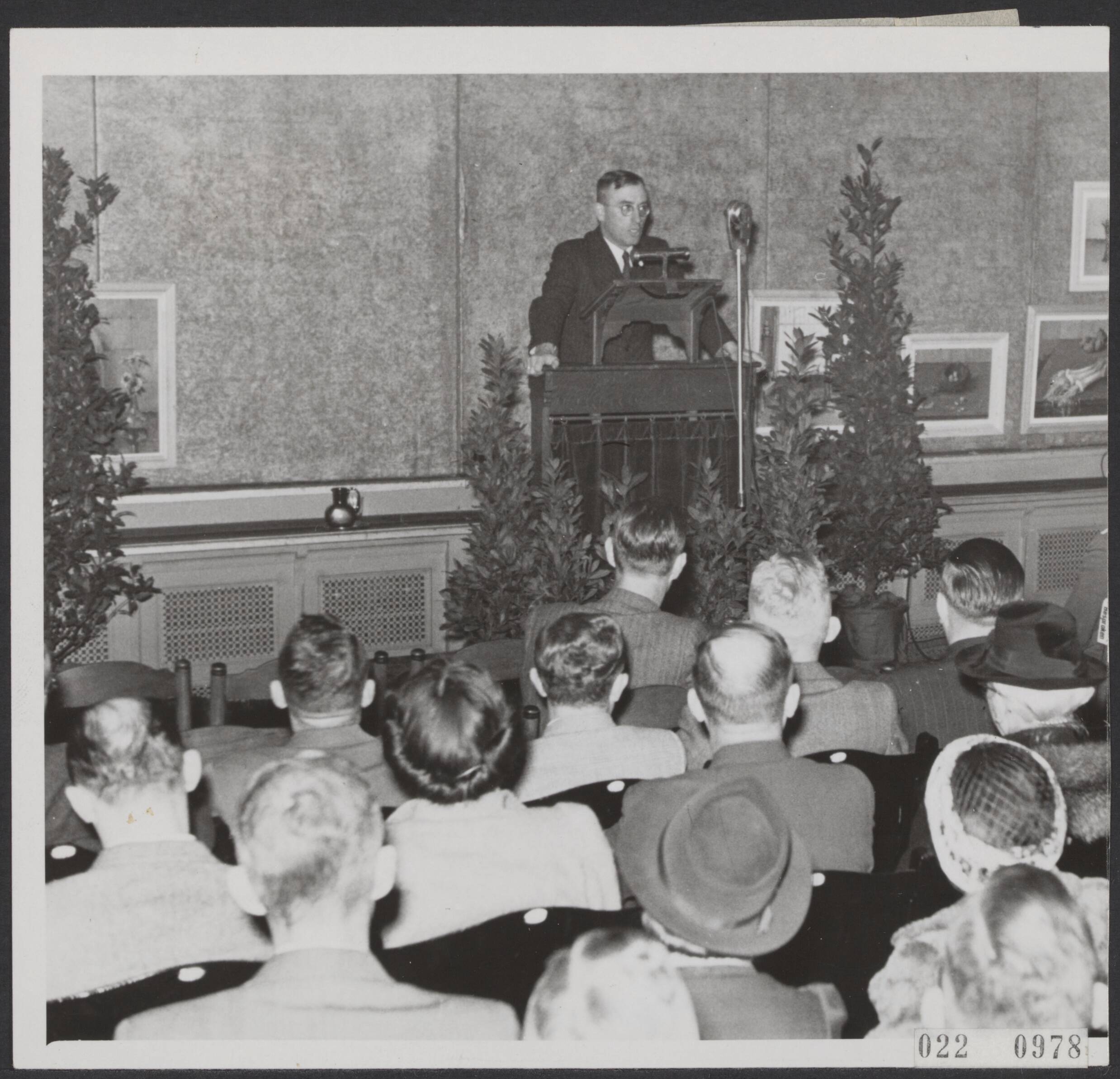 Dinsdag heeft in de Pulchri-Studio te Den Haag SS-Standartenführer Heiden een voordracht gehouden over het thema "Bäuerliche Lebensgestaltung als Kulturaufgabe"