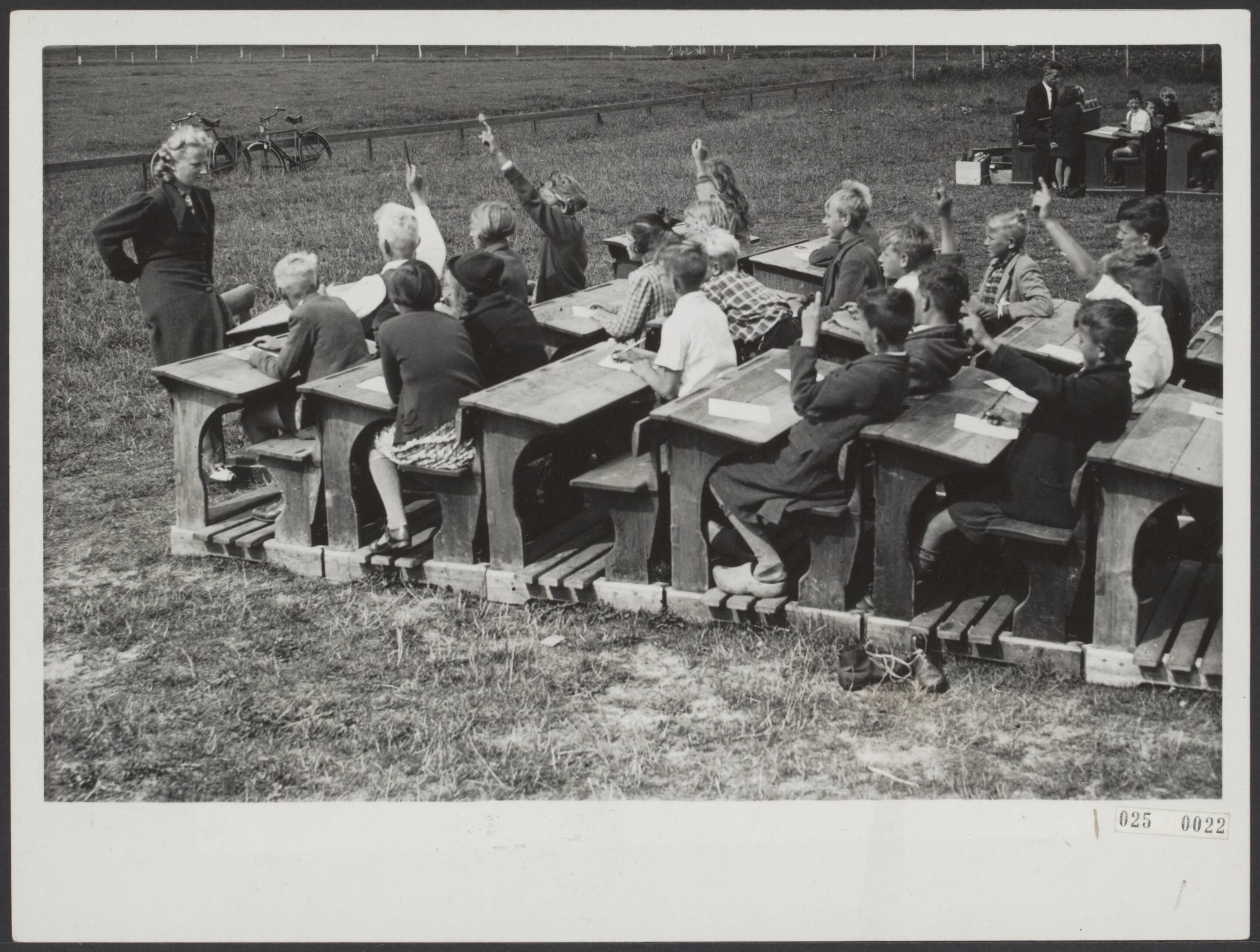 Niet minder dan 30.000 mensen zijn thans uit Den Helder geevacueerd, en hebben in de Helderse randgemeenten in het gehele Noorderkwartier onderdak gevonden. De scholen in deze gemeenten zijn overbevolkt. Een hoofdonderwijzer te Julianadorp wist raad. Tientallen baken plaatste hij op een sportterrein achter het schoolgebouw en in de aldus gevormde "Openluchtschool" krijgen thans de leerlingen uit Julianadorp samen met de Helderse gasten les