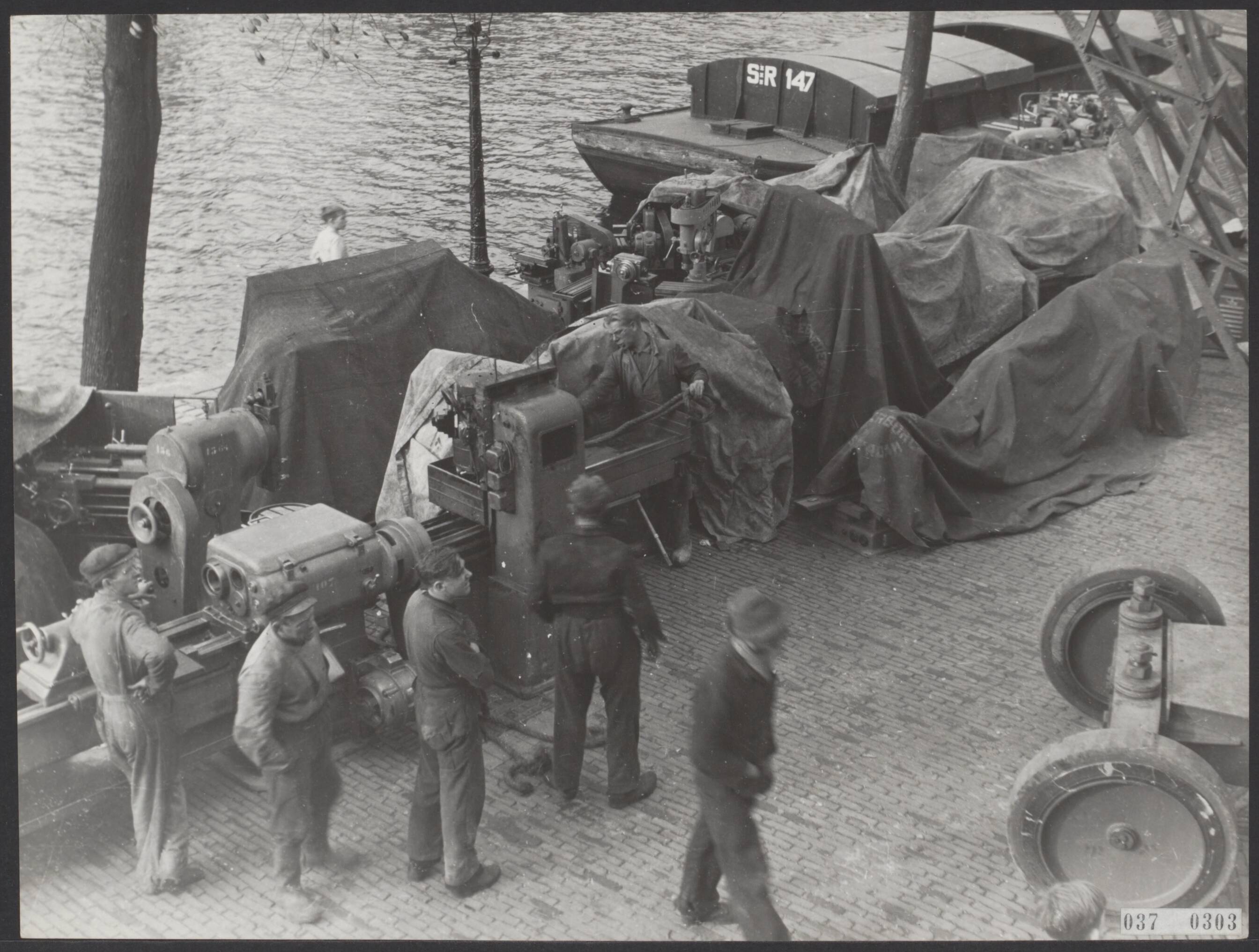 Machines en onderdelen worden uitgeladen in een haven recuperatie Duitsland?