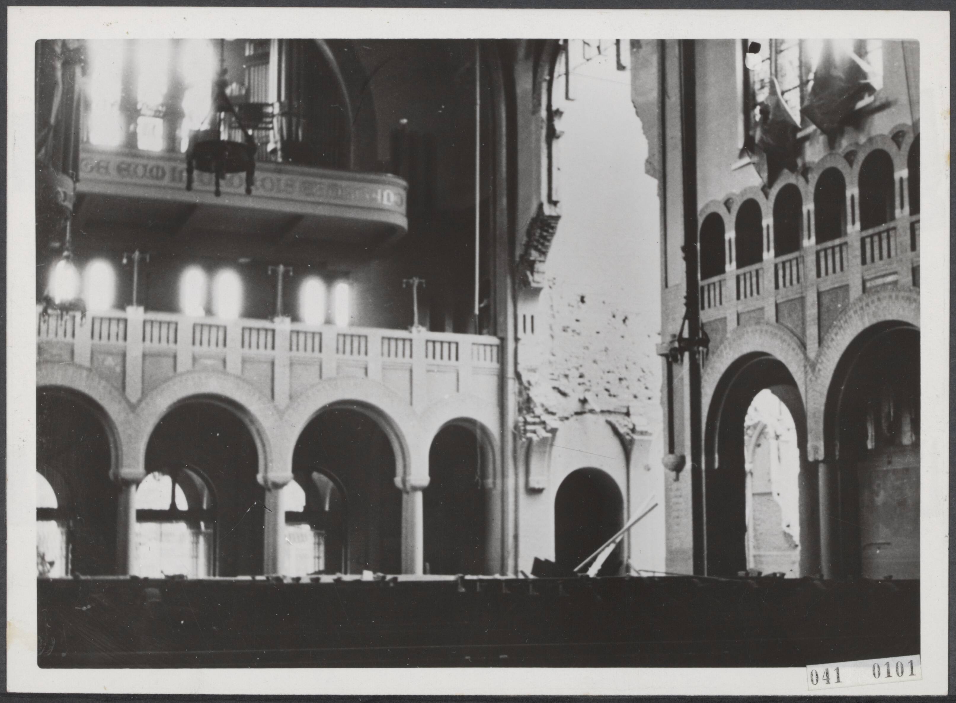 Rotterdam. Schade aan de St. Elisabethkerk ontstaan als gevolg van een Brits bombardement in de nacht van 3 op 4 oktober 1941