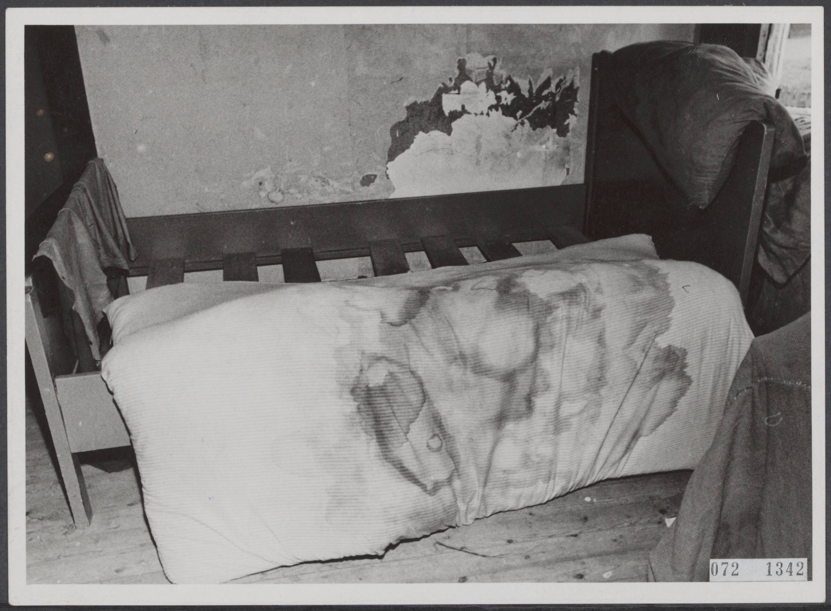 Woningtoestand in Amsterdam bed met door vocht en schimmel aangetaste muur en lakens