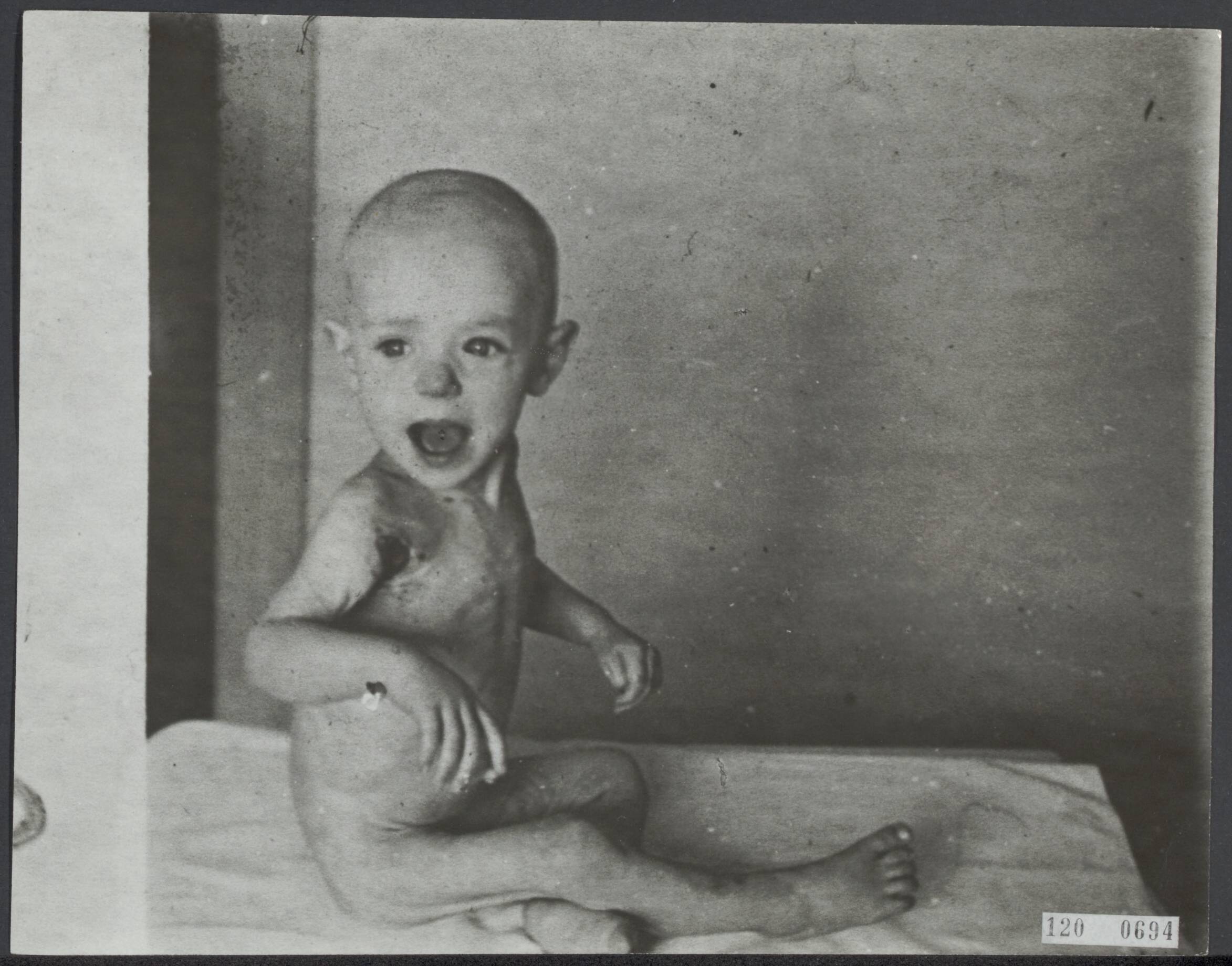 Hongerwinter. Een jaar oude baby waarvan de moeder niet teruggekeerd is van een voedseltocht en de vader is weggevoerd na razzia naar Duitsland