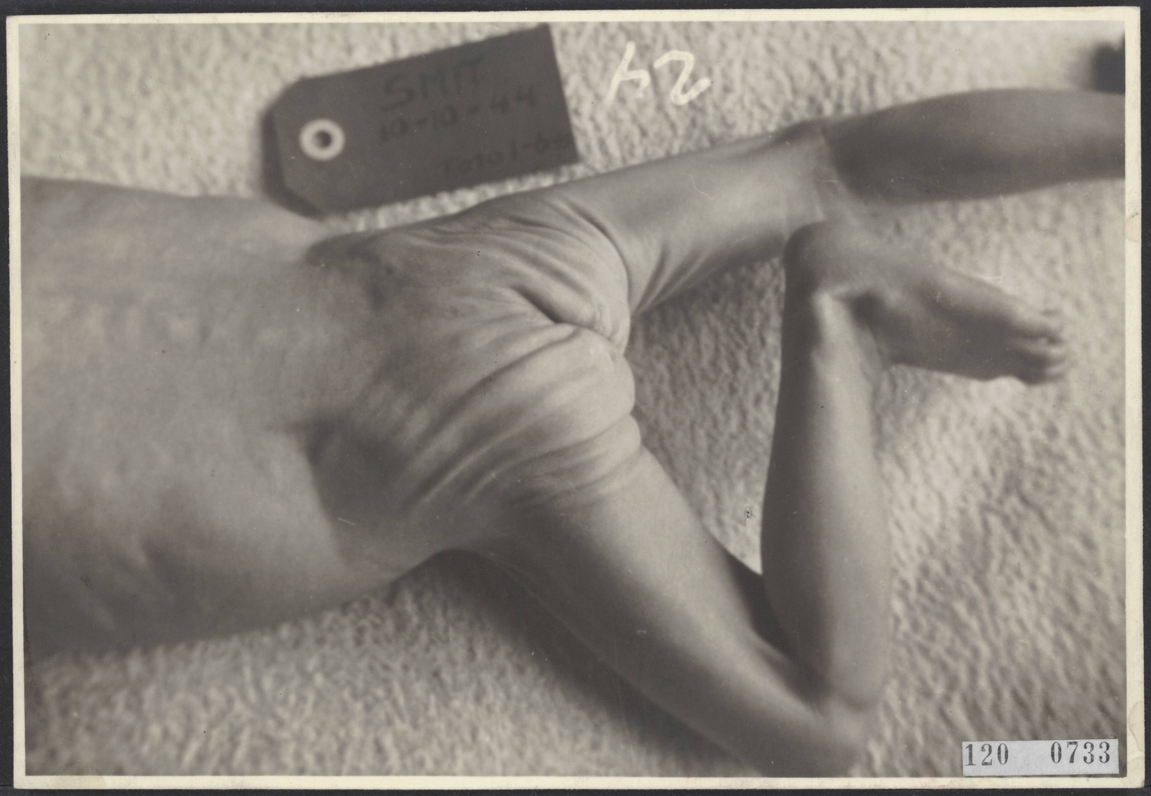 Hongerwinter. Kind lijdend aan ondervoeding geboren 10-10-1944. Op naamkaartje: Smit