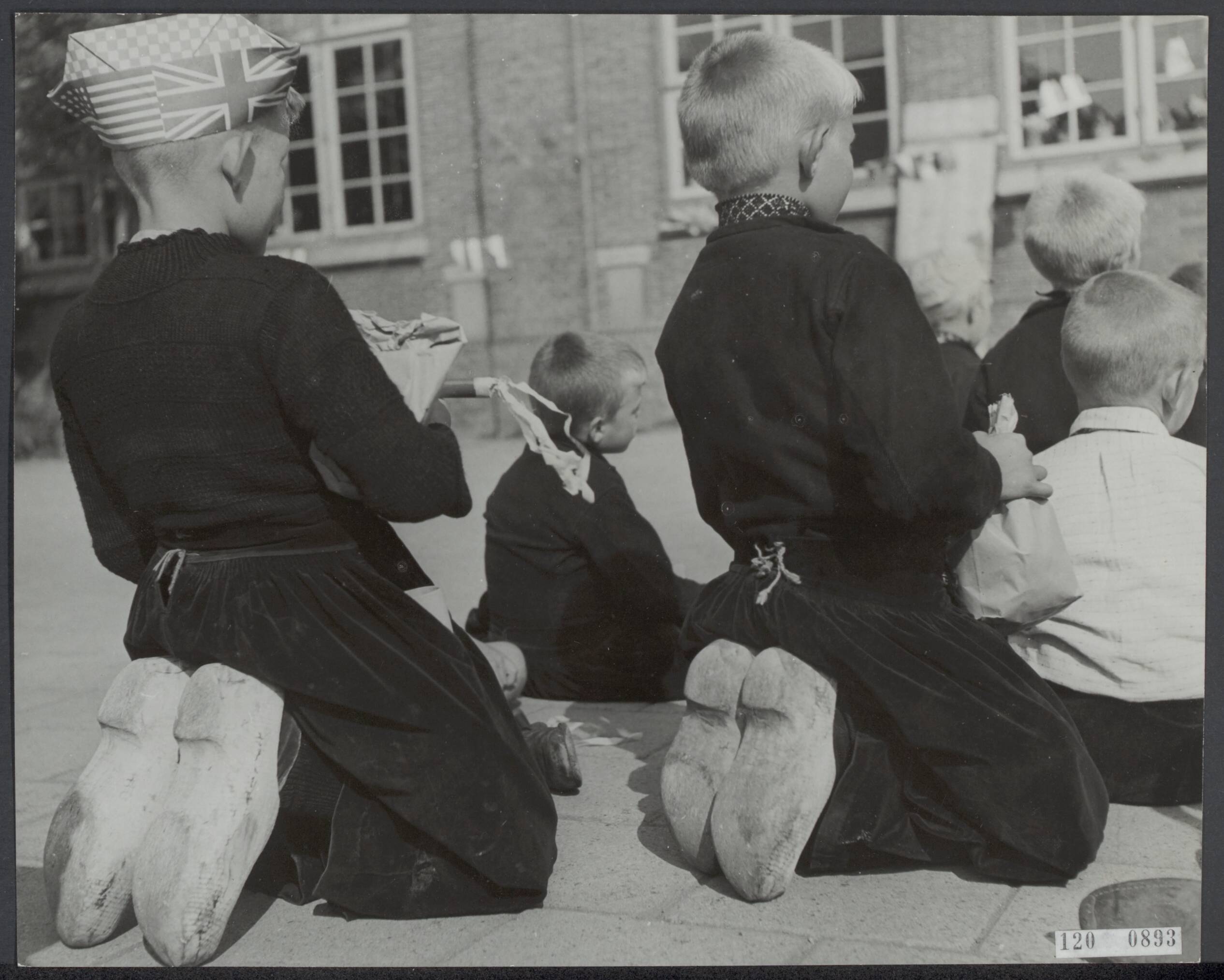 Bevrijding. Volendam viert de bevrijding. Kinderen kijken naar poppenkast