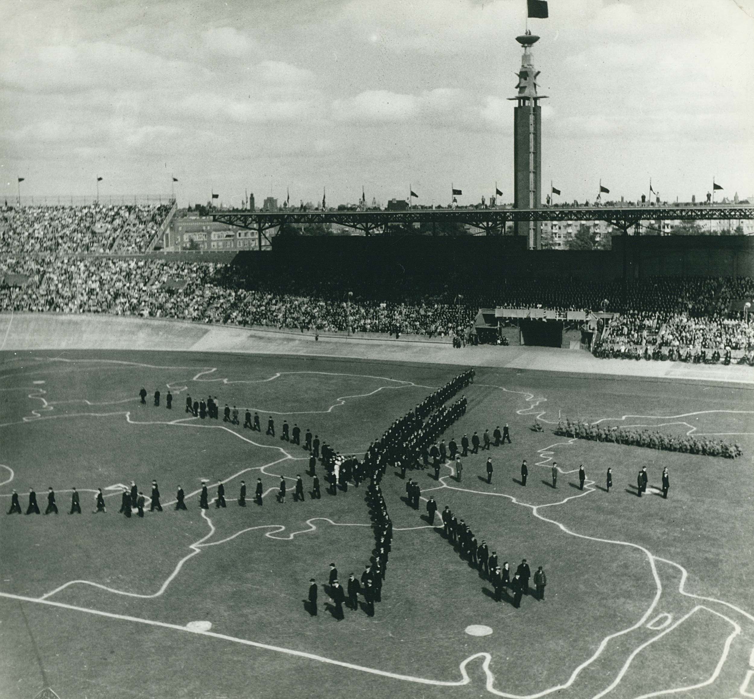 Eerste nationale bevrijdingsfeest in het Olympisch Stadion: kaart van Nederland