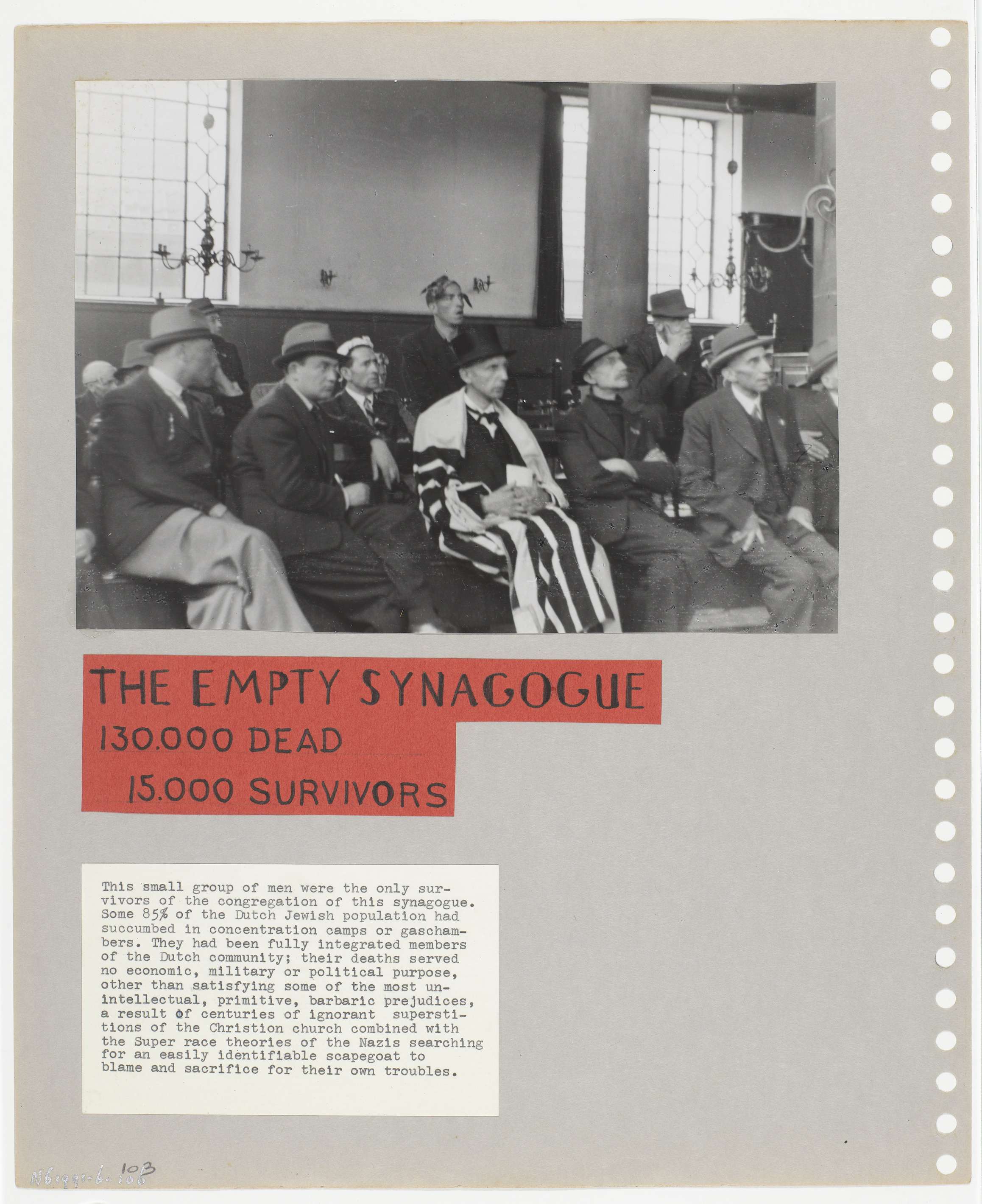 In de Portugese synagoge te Amstetrdam wordt de eerste na-oorlogse dienst gehouden met een handvol overlevenden.