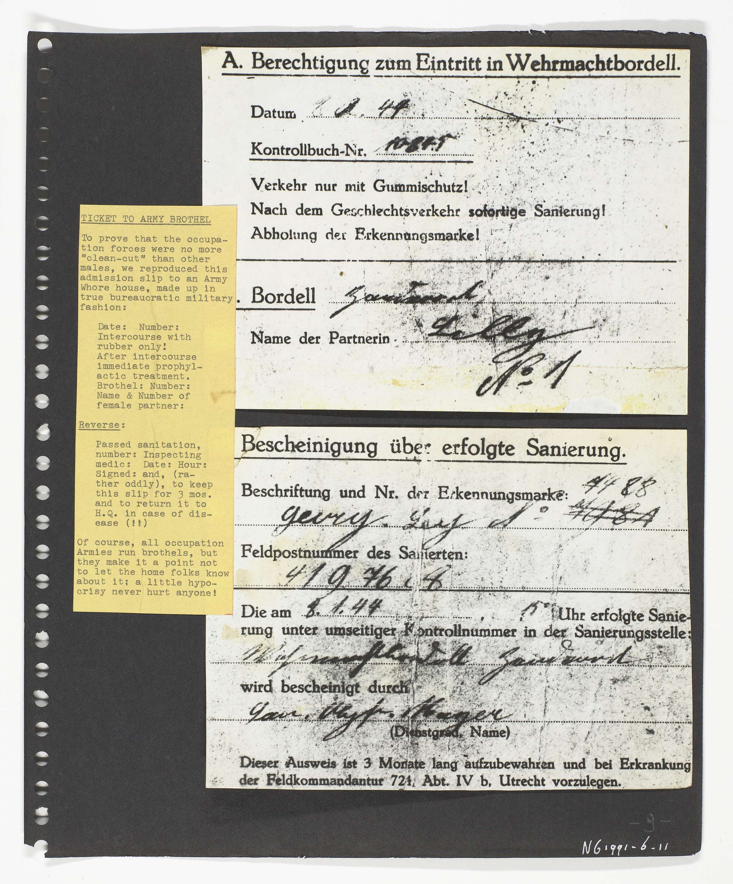 Copieën van de voor- en achterkant van een formulier voor een bordeelbezoek voor soldaten van de Wehrmacht