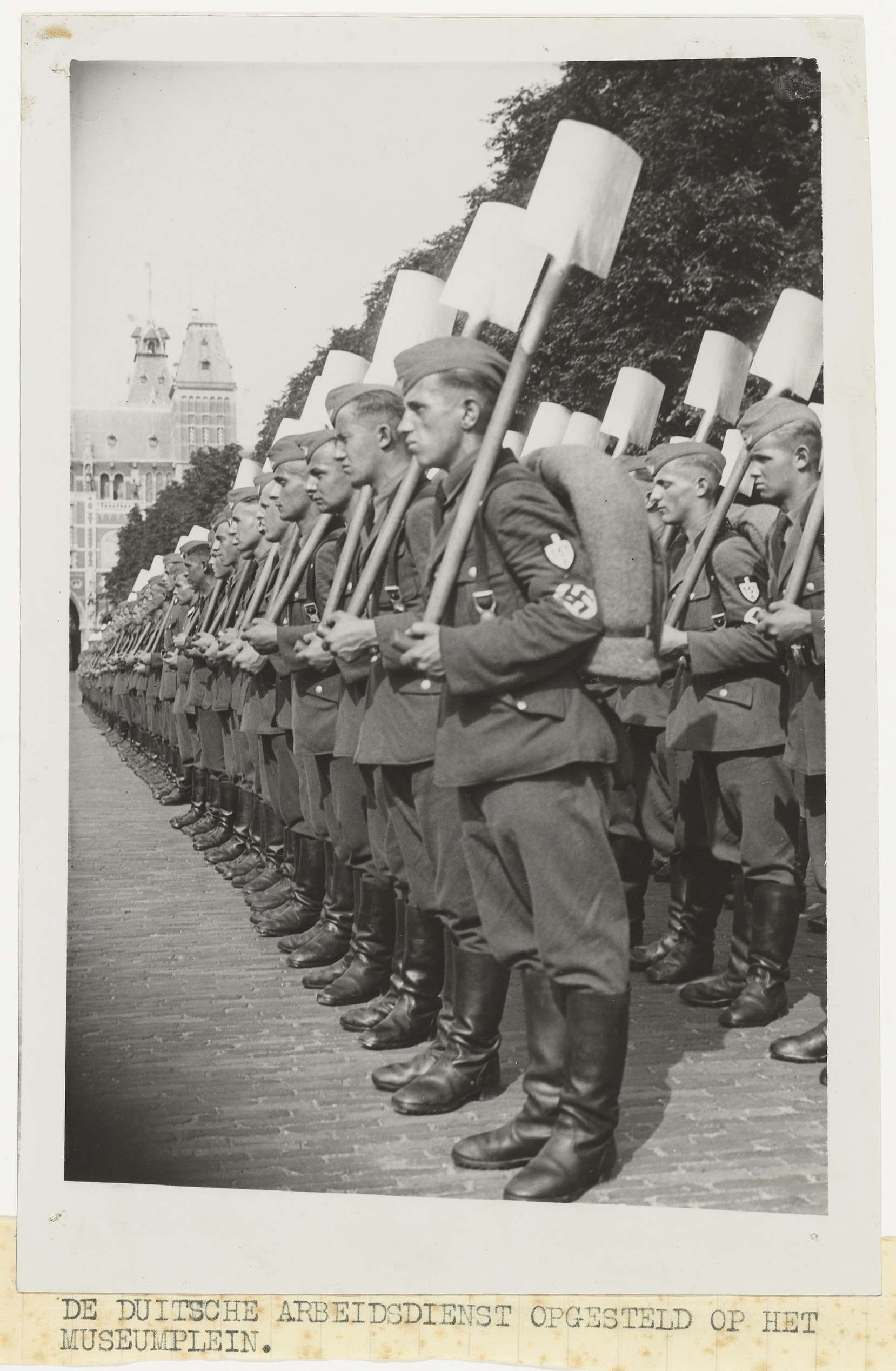 Duitse Reichsarbeitsdienst opgesteld op het Museumplein