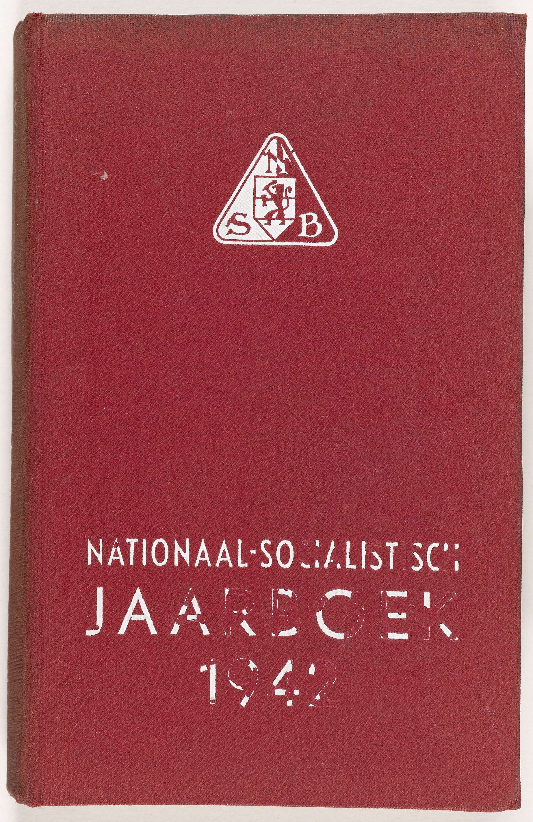 Jaarboek, soort agenda, met rood linnen omslag met in wit opdruk embleem NSB en titel. Het jaarboek bevat een veelheid aan informatie over de NSB: geschiedenis, afdelingen, afbeeldingen van belangrijke personen in de NSB, foto's van gebeurtenissen en alle onderscheidingstekens van de NSB. Daarnaast een agenda en veel advertenties.