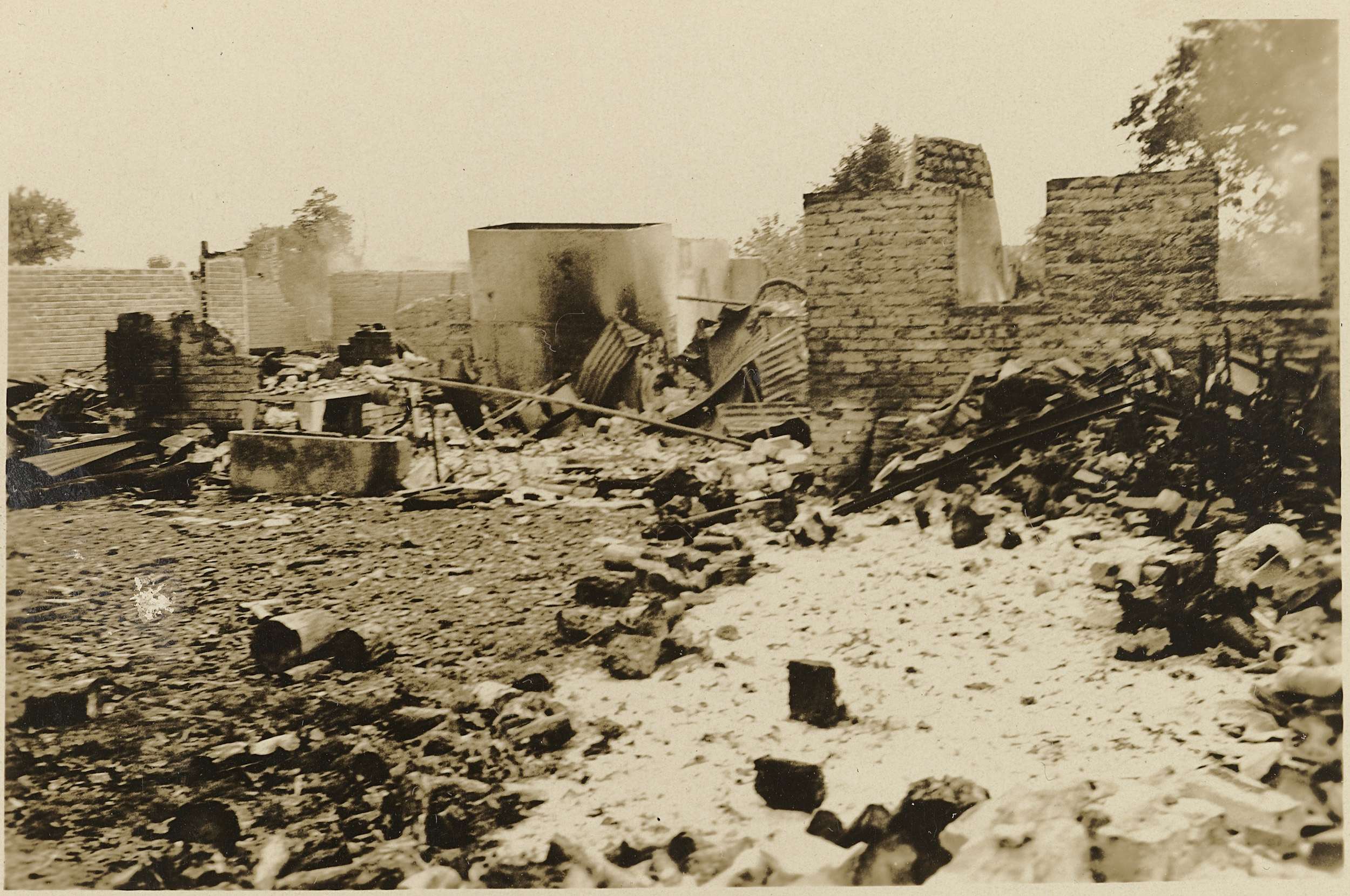 Geruïneerde huizen. Foto behorend bij album 'Kriegserinnerungen'.
