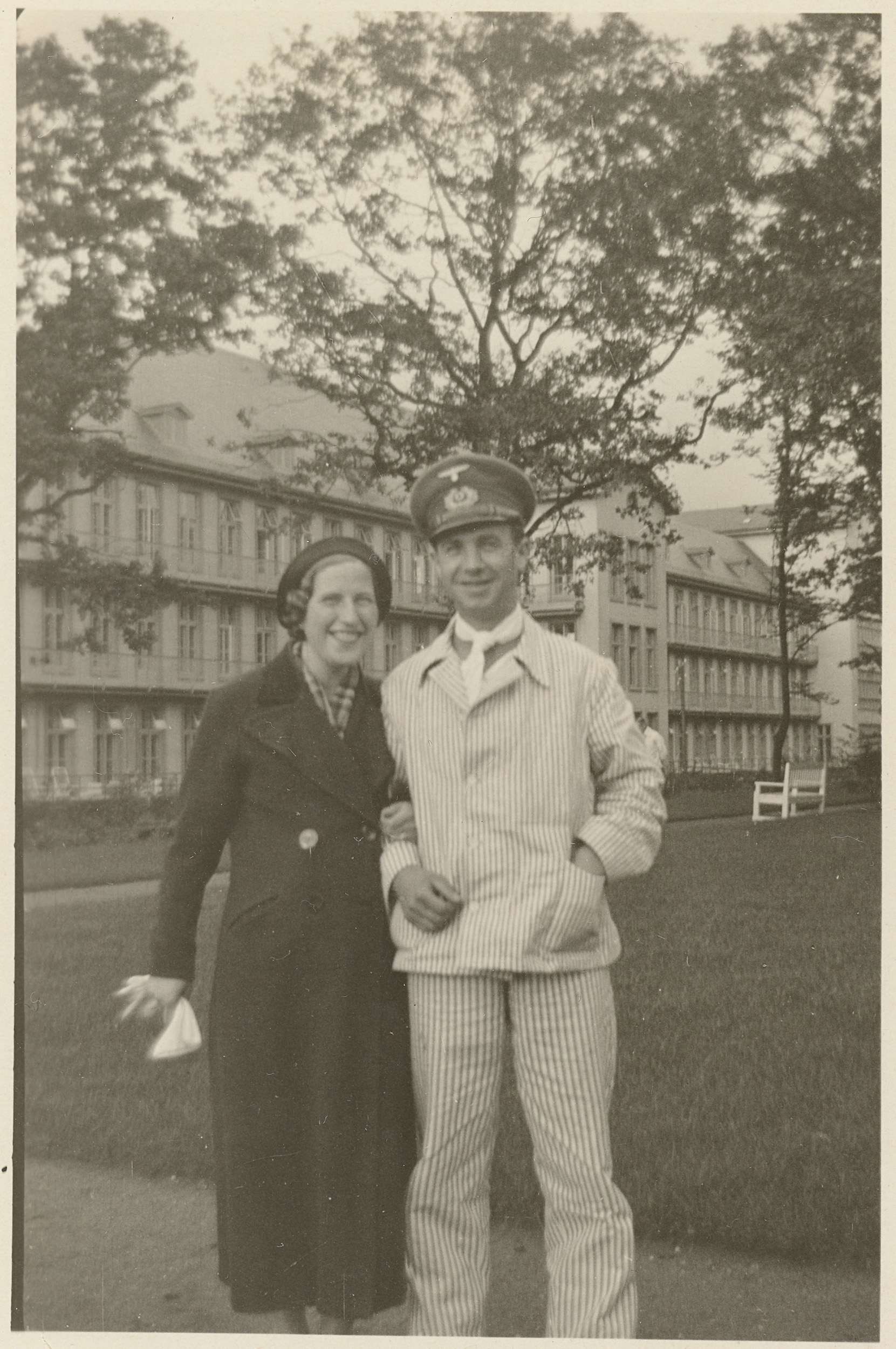 Duits militair in gestreept pak, met zijn vriendin
