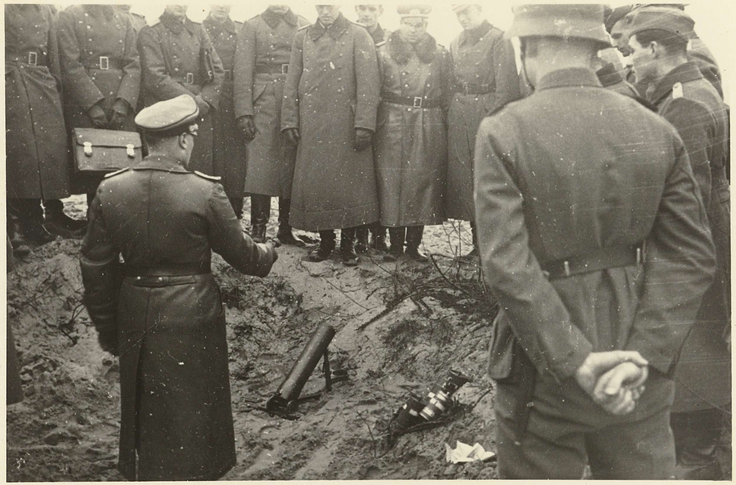 Een groep Duitse militairen krijgt instructie hoe een mortier te gebruiken. Foto behorend bij album 'Kriegserinnerungen'.