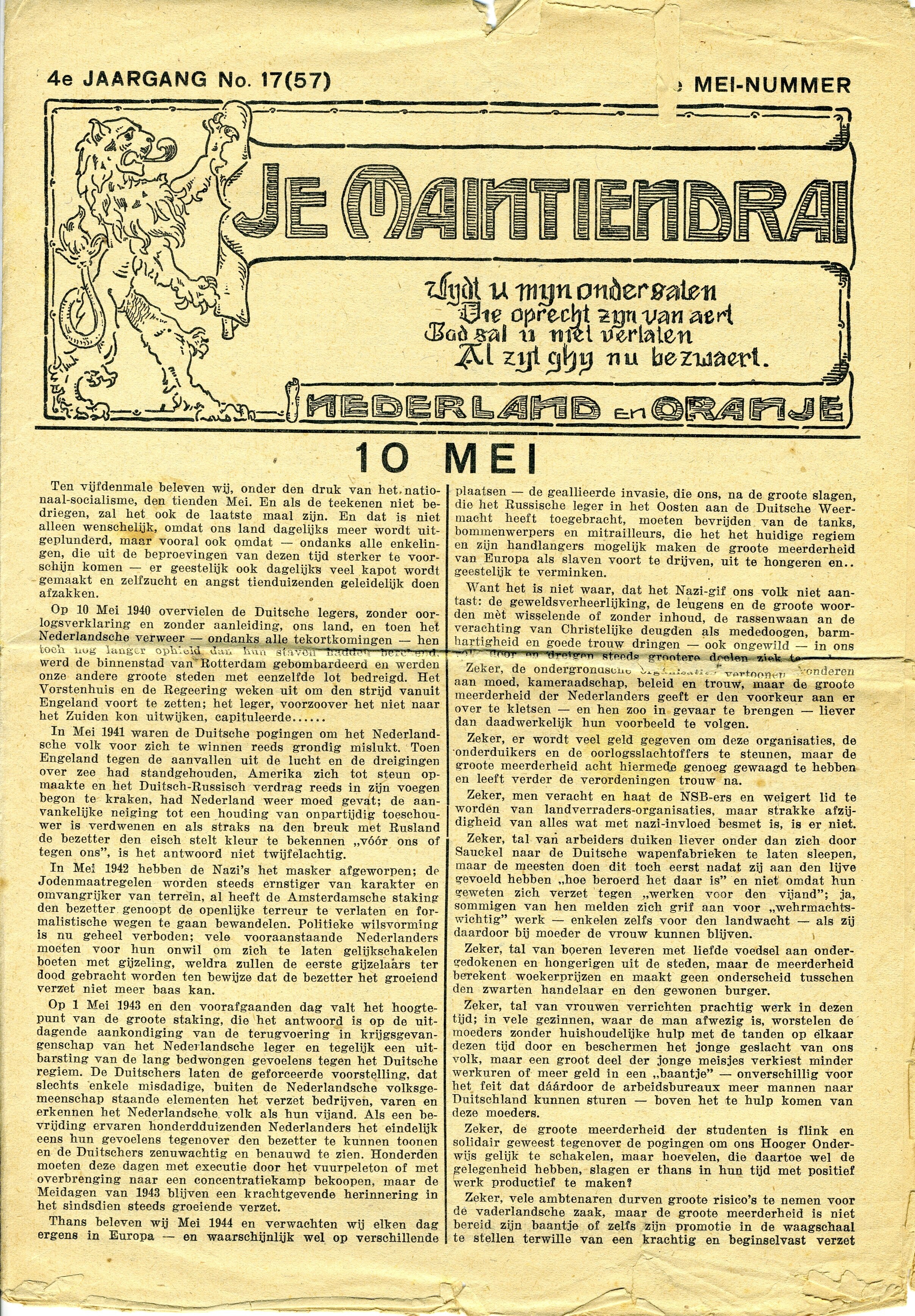 Editie nummer 17 van de 4e jaargang van "Je Maintiendrai". In deze mei editie wordt aandacht besteed aan de nadere overwinning op Duitsland. De editie omvat 8 pagina's.