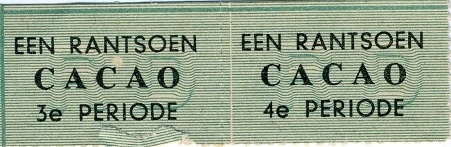 Twee lichtgroene bonnen ''Rantsoen Cacao'' derde en vierde periode.