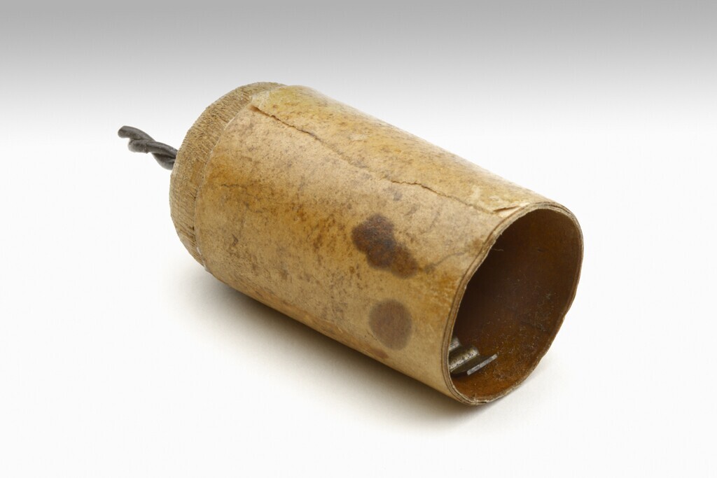 Lampfitting vervaardigd van karton en hout.