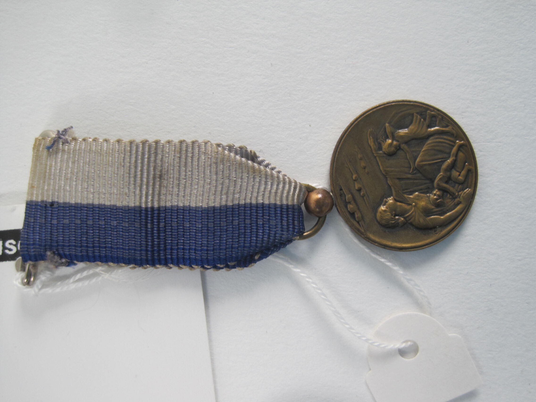 Een zilverkleurige ronde metalen medaille bevestigd aan een lint met een grijze baan en een baan in 'Nassausch' blauw. Op een kant van de medaille in reliëf de afbeelding van een zittende vrouw die haar arm uitstrekt om twee kinderen te beschermen tegen drie overvliegende bommenwerpers. Op de andere kant een wapenschild met de Nederlandse Leeuw en: "Luchtbescherming 1940-1945". De medaille is ingesteld voor allen die dienstdeden bij de Luchtbeschermingsdienst in de periode 1940-1945 op initiatief van de Nederlandsche Vereeniging voor Luchtbescherming.