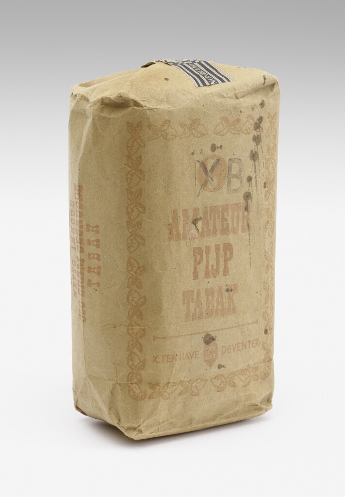 Een pak "Amateur" pijptabak van 250 gram ad F 1,50. Vervaardigd door K. ten Have te Deventer.