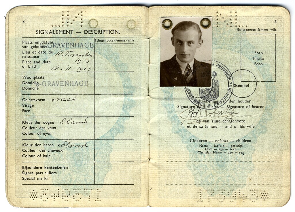 Een "Paspoort van het Koninkrijk der Nederlanden" afgegeven op 10 juli 1935 op naam van Karel Johannes Roberti geboren op 18 november 1913 te Den Haag.