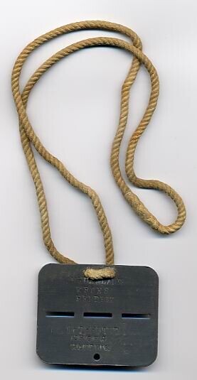 Grijs metalen identiteitsplaatje, een zogenaamd 'breekplaatje' voor militairen aan een touwtje. Aan een kant zowel op het bovenste deel als het onderste: "Nederland Kroes Hendrik" en aan de andere kant eveneens tweemaal: "Amersfoort 27.8.1916 K. PTR. V." Wanneer de militair gewond of gesneuveld was, werd het onderste deel afgebroken voor de administratie en het bovenste bleef bij de militair.