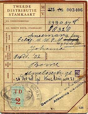 Tweede distributiestamkaart met stempelkaart van Distributiekring Hengelo met daarin geniet een blaa...
