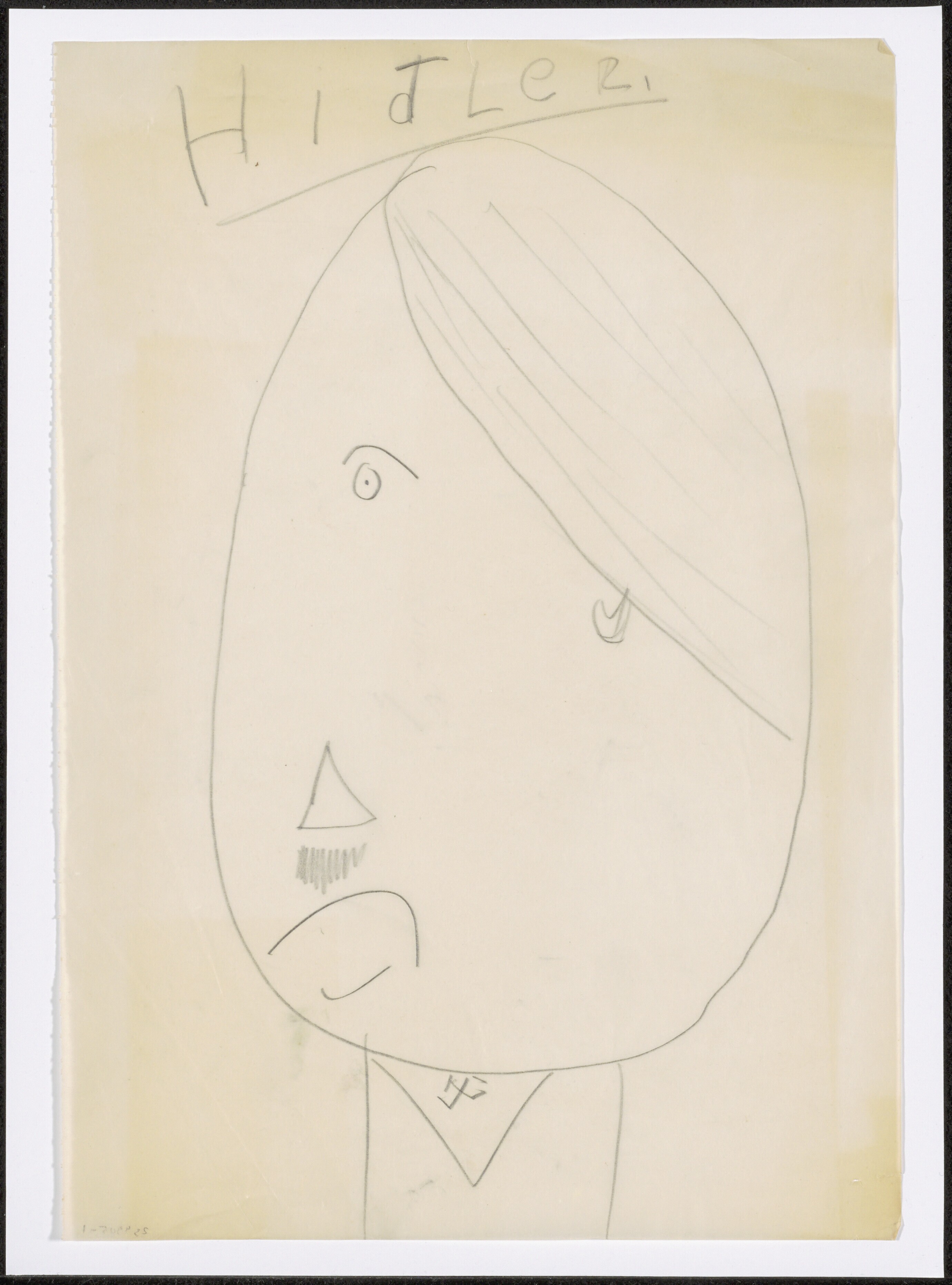 Elf potloodtekeningen van Hitler op papier van verschillende grootte.