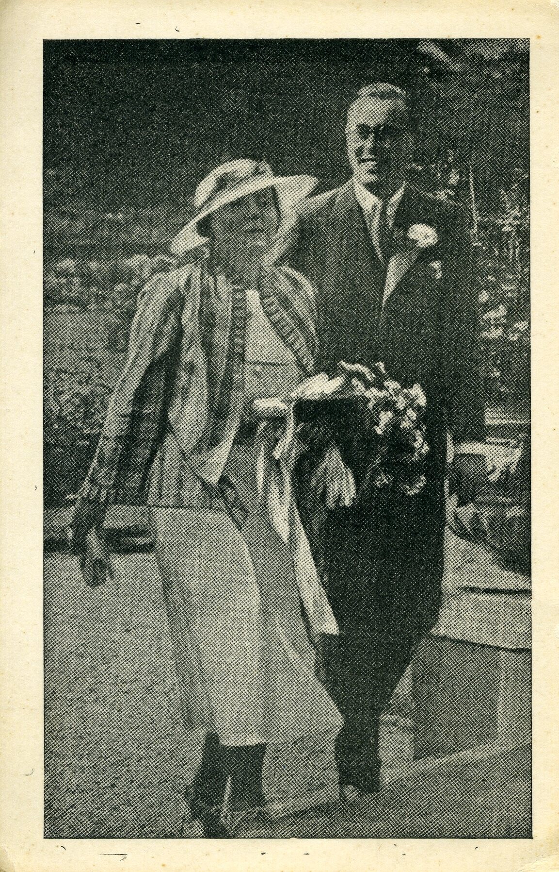 Een op een kaart afgedrukte zwart-wit foto van prinses Juliana en prins Bernhard tijdens hun verloving in 1936. Deze foto's werden door geallieerde vliegtuigen boven Nederland uitgestrooid om de Oranjegezinde bevolking een hart onder de riem te steken. Ze werden dan ook graag verzameld en onderling geruild. De Duitse bezetter probeerde dit tegen te gaan door het bericht te verspreiden dat deze foto's spontaan in brand konden vliegen. Hierdoor kregen ze de naam 'brandplaatjes'.