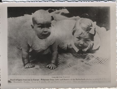 Foto van de prinsesjes Beatrix en Irene. Dergelijke foto's werden door geallieerde vliegtuigen boven Nederland uitgestrooid om de Oranjegezinde bevolking een hart onder de riem te steken. Ze werden dan ook graag verzameld en onderling geruild. De Duitse bezetter probeerde dit tegen te gaan door het bericht te verspreiden dat deze foto's spontaan in brand konden vliegen. Hierdoor kregen ze de naam 'brandplaatjes'.