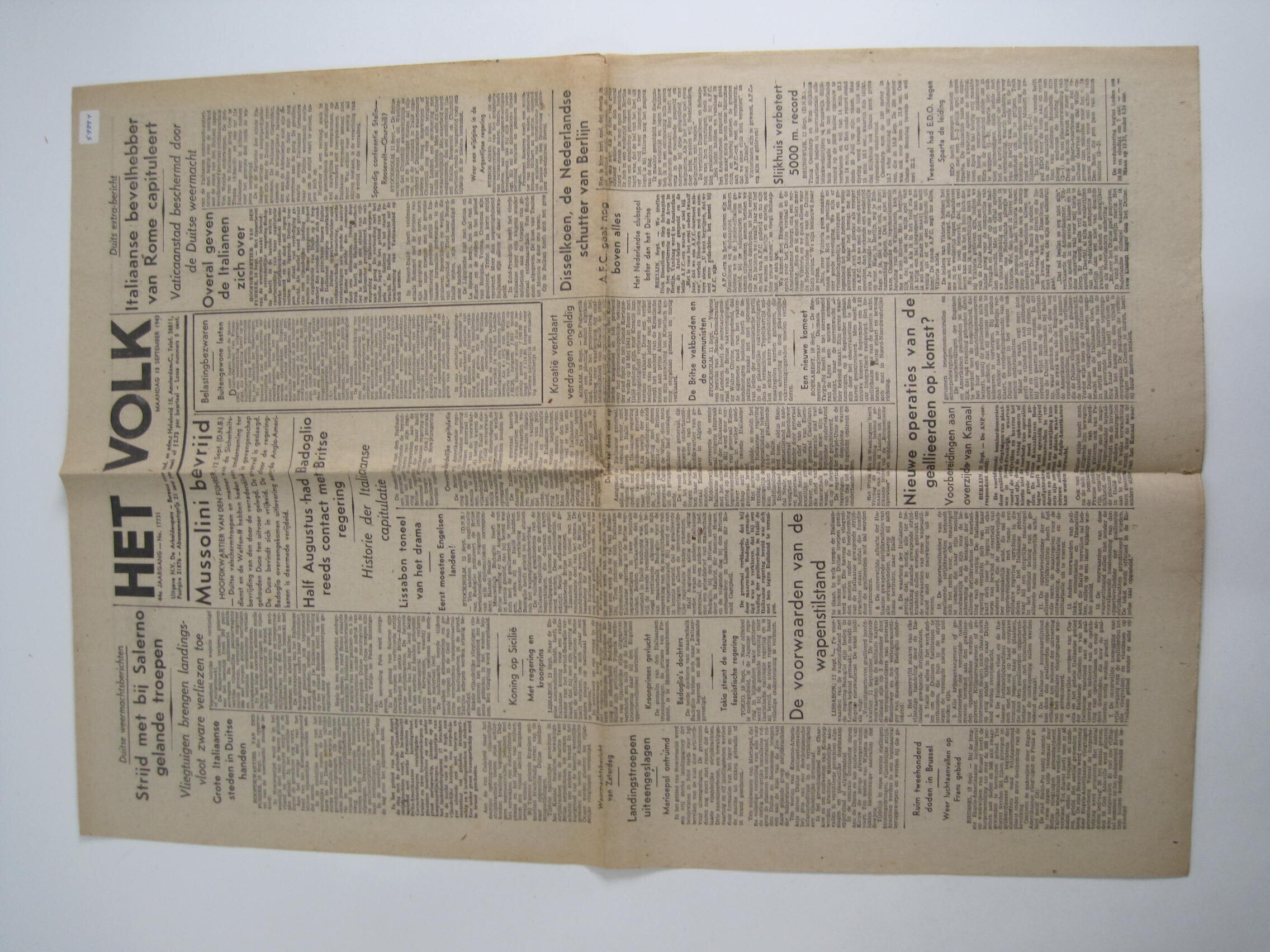 Op inschrijfkaart: "Het Volk" 13 sept. 1943. o.a. "Mussolini bevrijd".