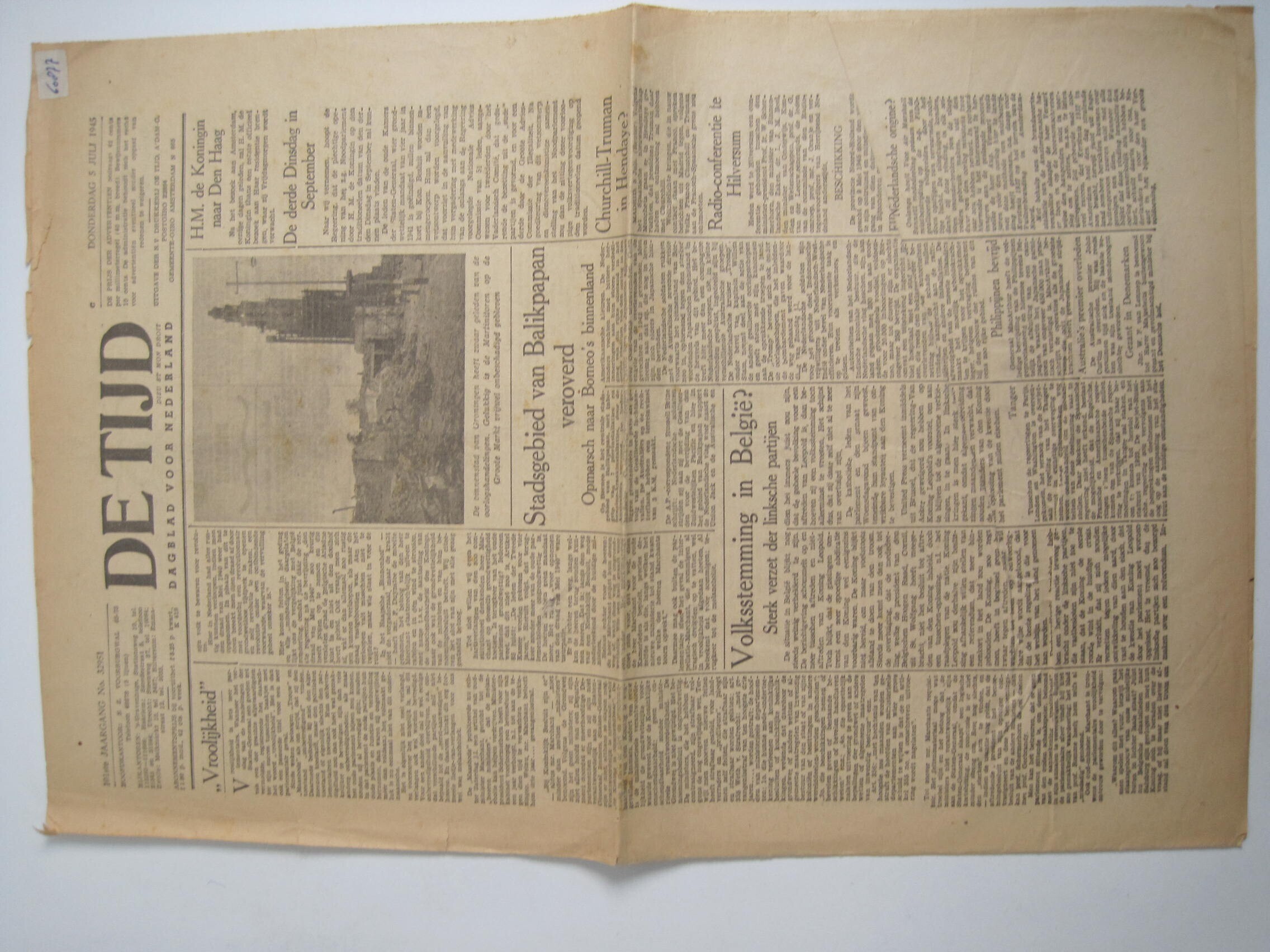 Exemplaar van dagblad De Tijd van donderdag 5 juli 1945.<br>