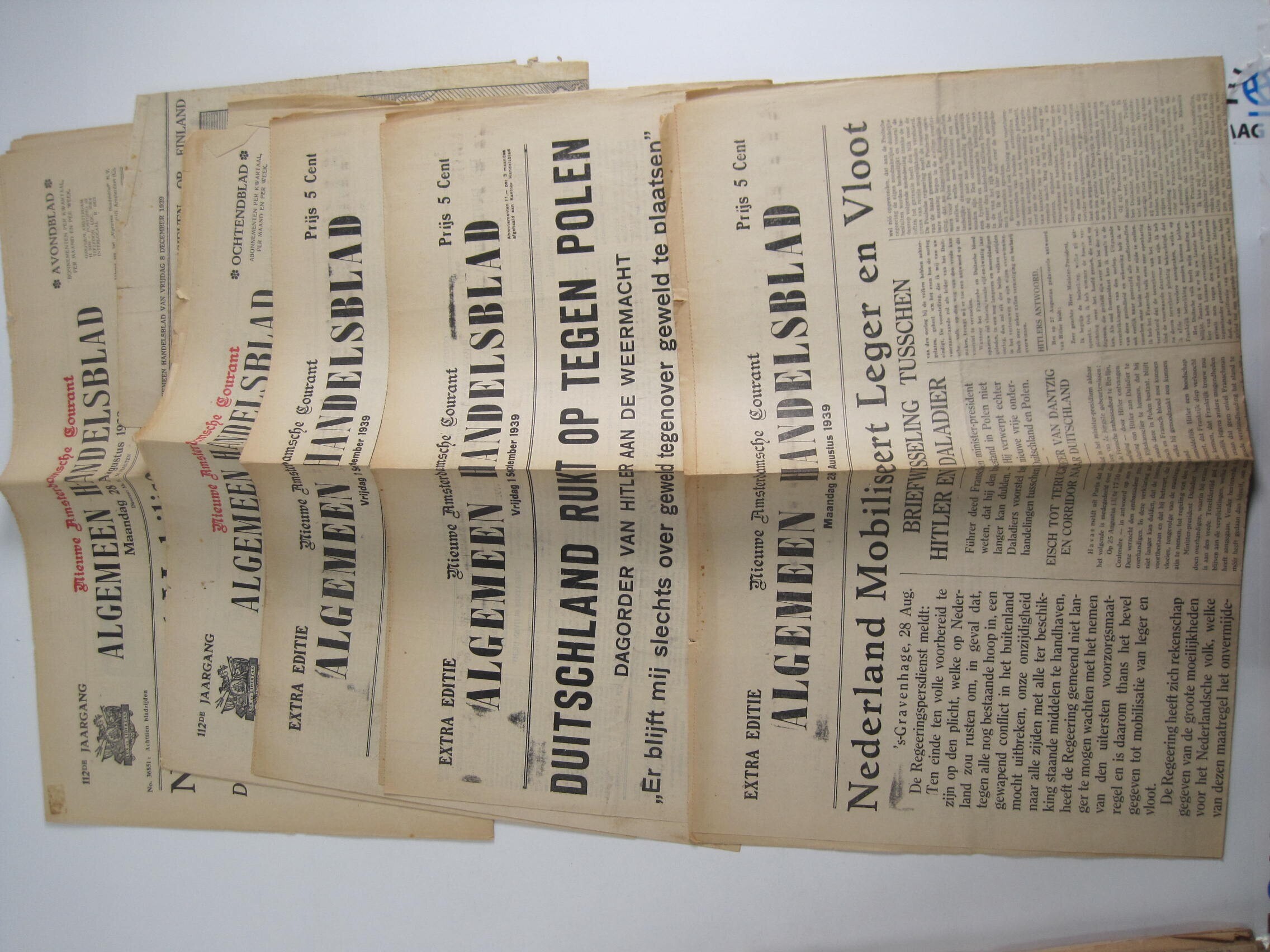 Algemeen Handelsblad. 5 exemplaren uit 1939 plus knipsel Fins-Russische oorlog.