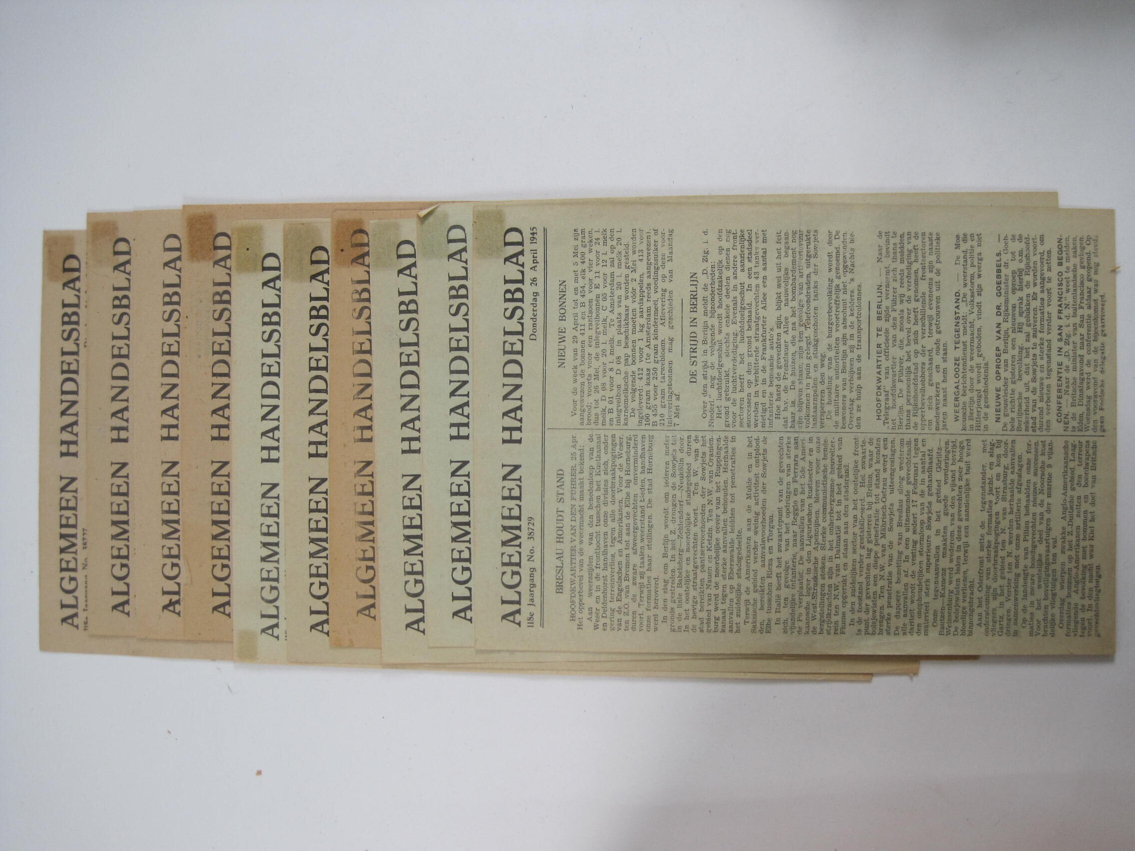 Algemeen Handelsblad. 9 ex. uit April / Mei 1945 (zeer klein formaat). 18, 20, 23, 24, 25, 26, 27, 28 April, 1 Mei.