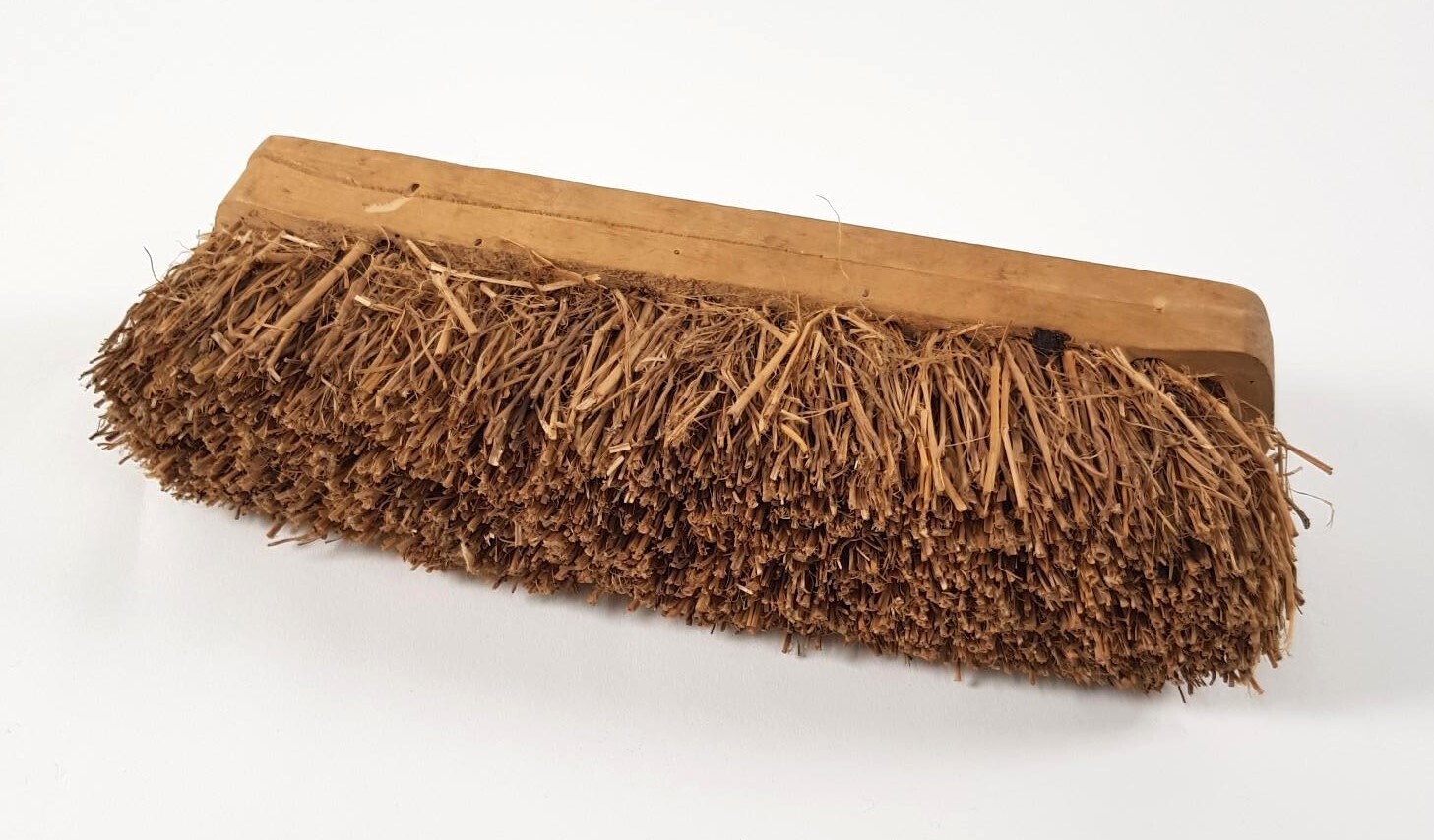 Een boender (schrobber voor vloeroppervlakten) gemaakt van hout en onbepaald plantaardig materiaal.