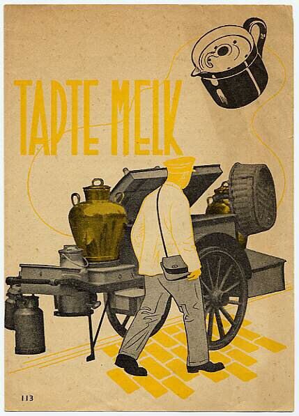 Voorlichtingsfolder over het gebruik van tapte- en karnemelk en enkele recepten. Op de voorkant een afbeelding van een melkkar.
