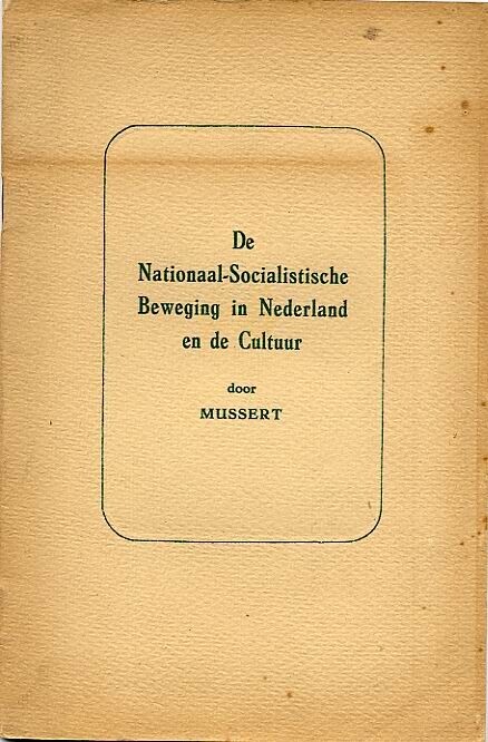 Boek met een historische en culture beschouwing over de N.S.B. door Anton Mussert. Het boek telt 16 pagina's. De witgele kaft heeft een groene opdruk.