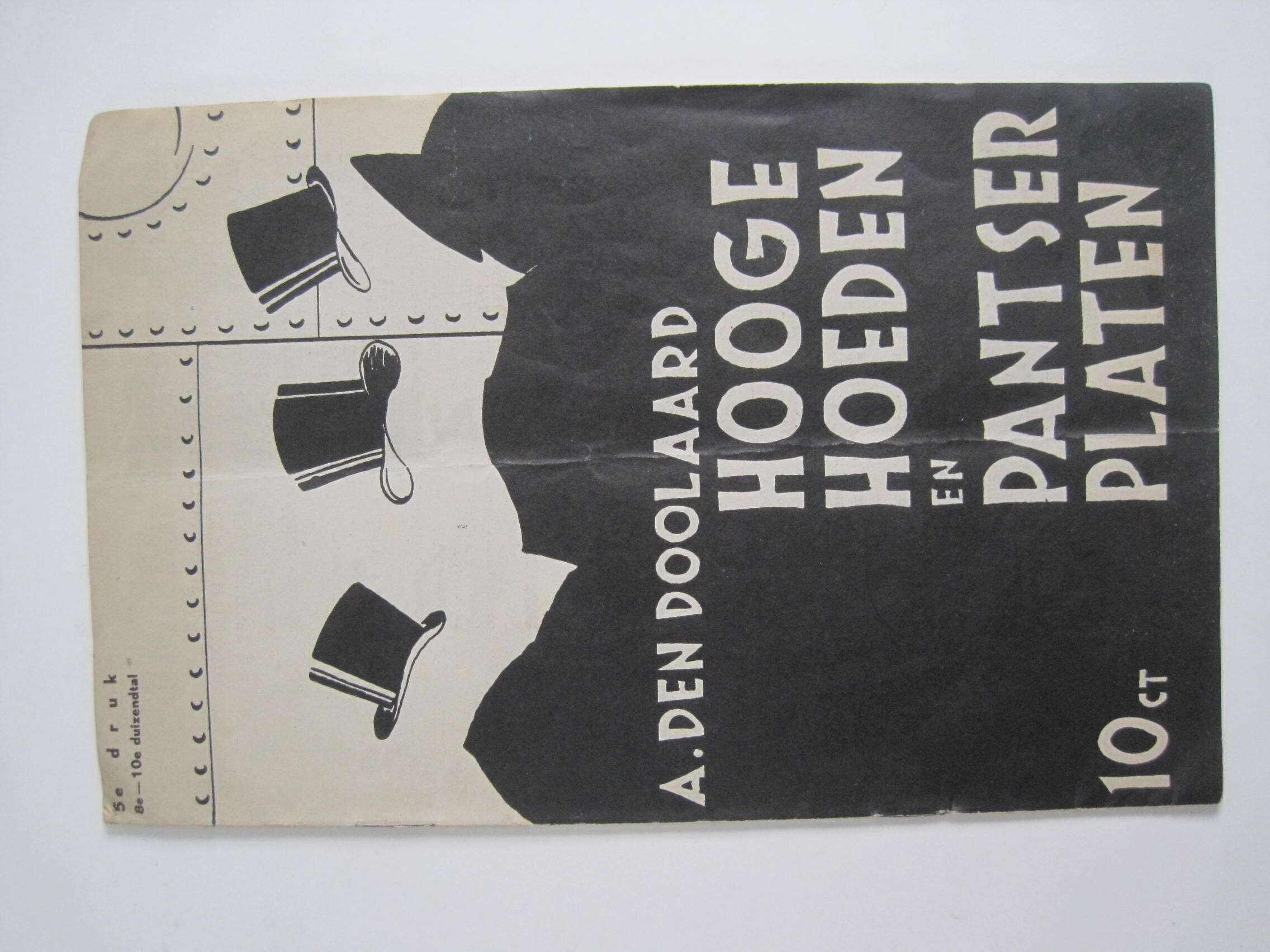 Een 16 pagina's tellend boek met anti-militaristische strekking: "Hooge Hoeden en Pantserplaten" door A.den Doolaard, speciale uitgave van het tijdschrift "Het Fundament", 1934.