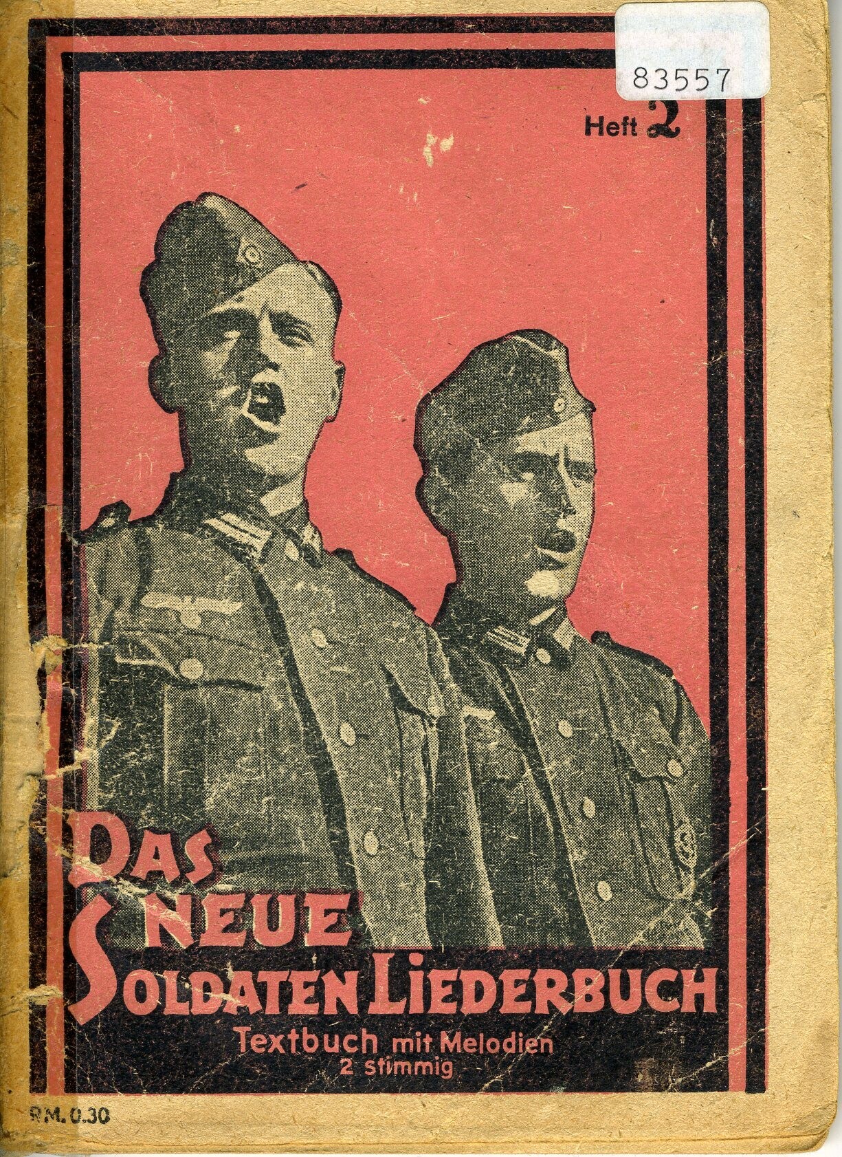 Een Duitse liedbundel met teksten in gotisch schrift met titel: "Das Neue Soldaten Liederbuch".