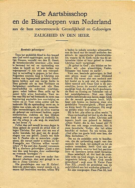Twee exemplaren van een pamflet van de Aartsbisschop en bisschoppen van Nederland aan de gelovigen.
