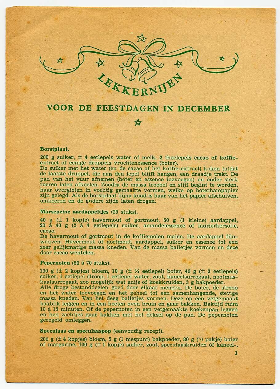 Folder met recepten voor de feestdagen, waarvoor de ingrediënten ondanks de voedselschaarste te verkrijgen zijn.
