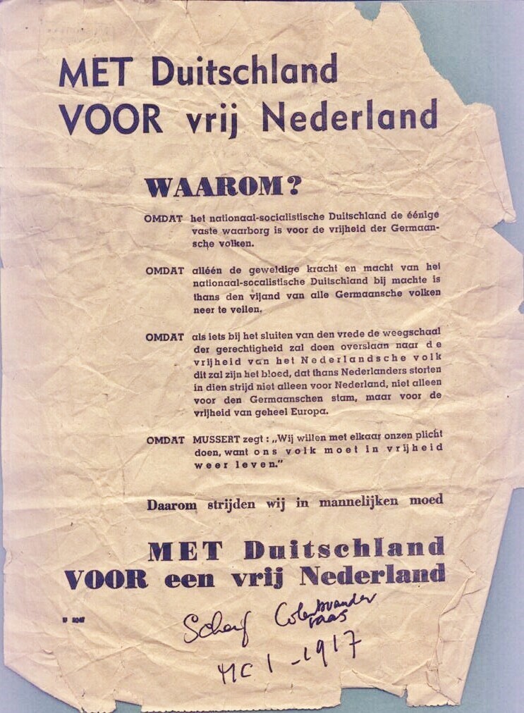 Pamflet van N.S.B.-signatuur over de noodzaak van samenwerking met Nazi-Duitsland.