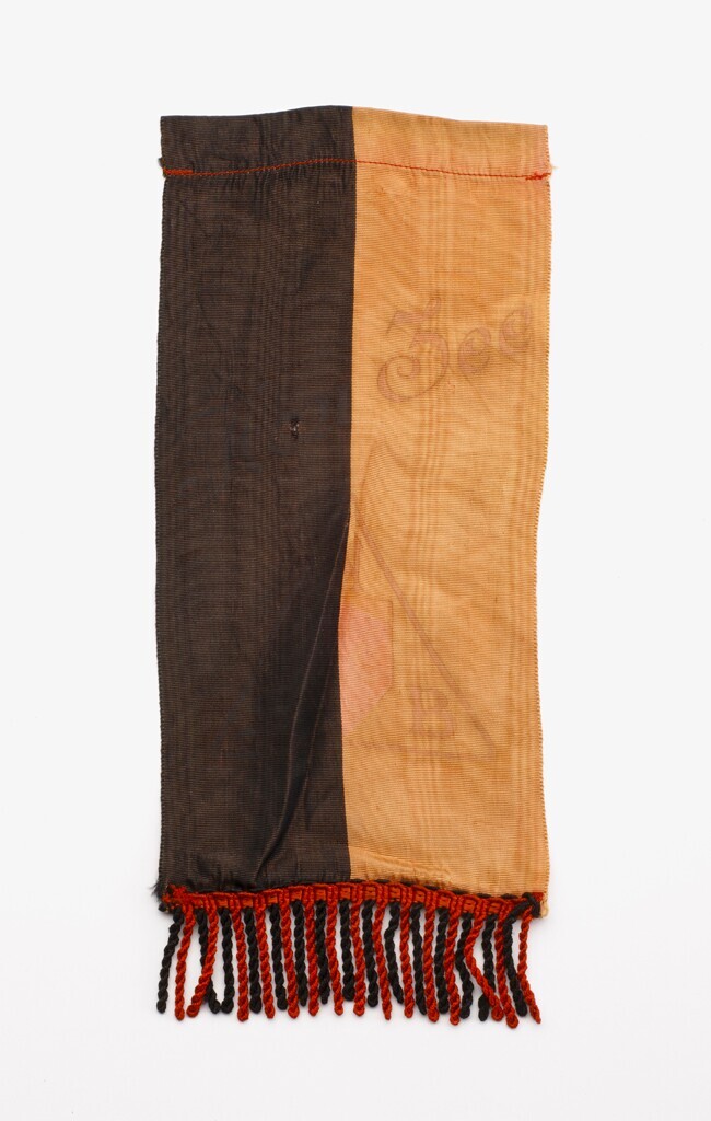 Een sterk verbleekt N.S.B.-vaantje in de kleuren rood en zwart bedrukt met "Houzee". Het vaantje heeft aan de onderkant rood en zwart franje en heeft aan de bovenkant de mogelijkheid om daar een stokje doorheen te steken.