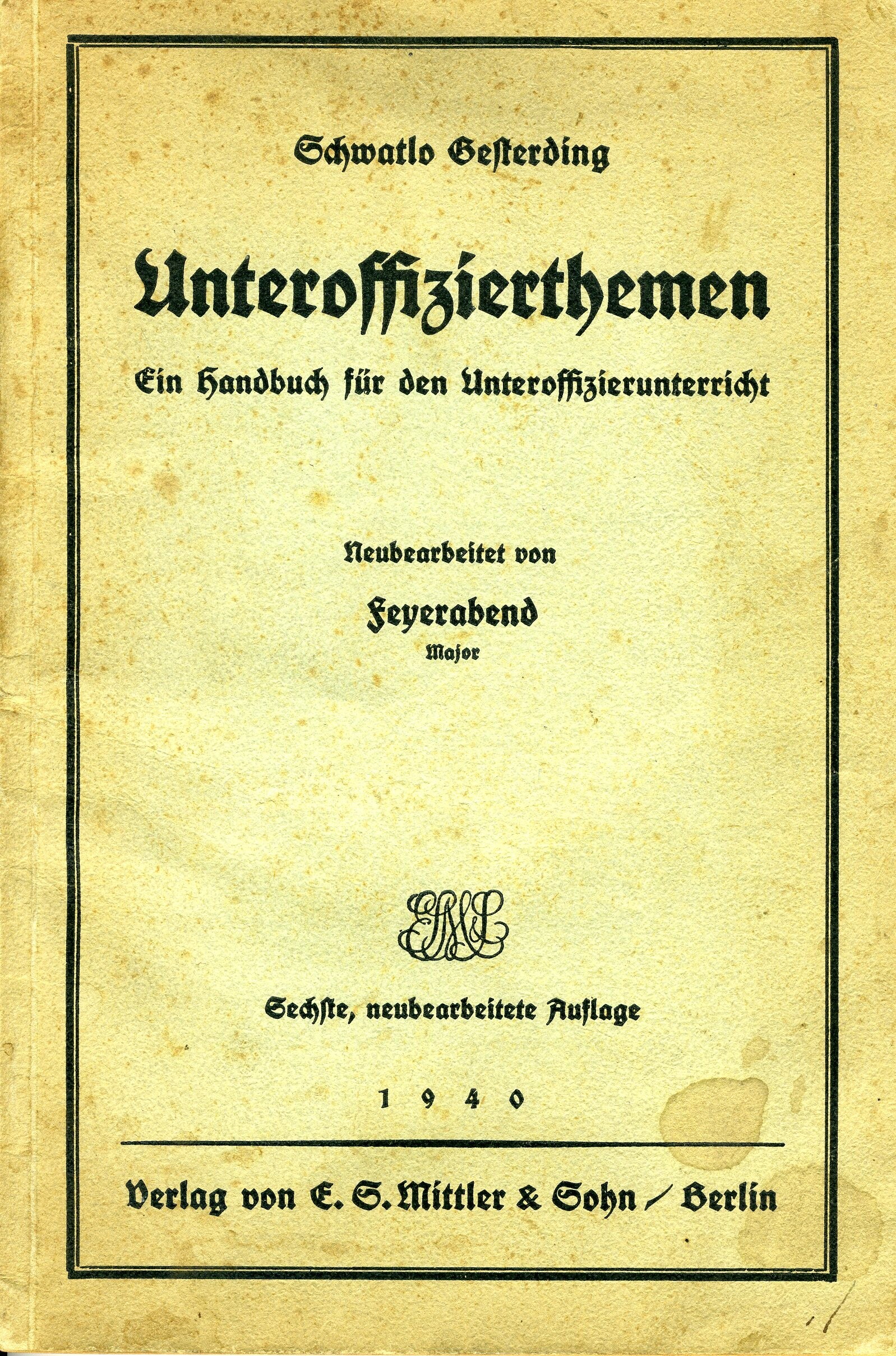 Een Duits handboek in gotisch schrift gedrukt voor onderofficieren. Het boek omvat 114 pagina's.