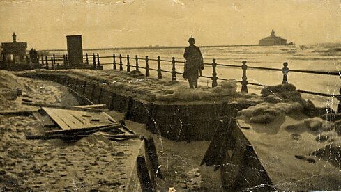 Een zwart-wit foto van de pier te Scheveningen. Genomen in de mobilisatietijd vanaf de boulevard.