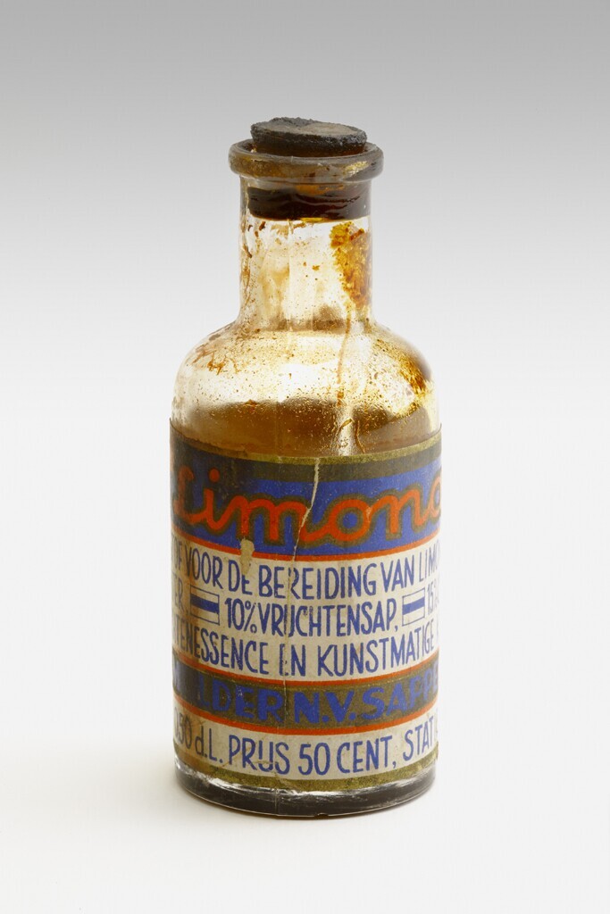 Een flesje 'Limona, grondstof voor de bereiding van limonade'.