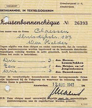 Twee cheques voor kousenbonnen op naam van de firma Claessen in Den Helder.