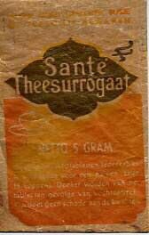 Bruin zakje voor tien tabletten theesurrogaat. Op de achterkant de gebruiksaanwijzing.